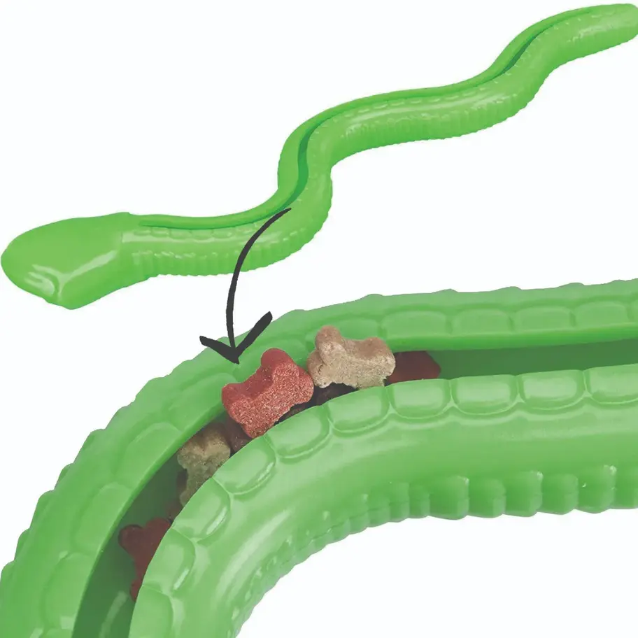 A diversão está garantida com o Mordedor Cobra TPR Treat Sound Verde! Este brinquedo interativo em formato de cobra é feito de plástico TPR, material atóxico e resistente, ideal para pets que adoram mastigar e brincar. O diferencial deste mordedor é o dispenser de petiscos na parte inferior, que libera guloseimas aos poucos, tornando a brincadeira mais envolvente e estimulando o exercício físico e mental do seu cachorro.