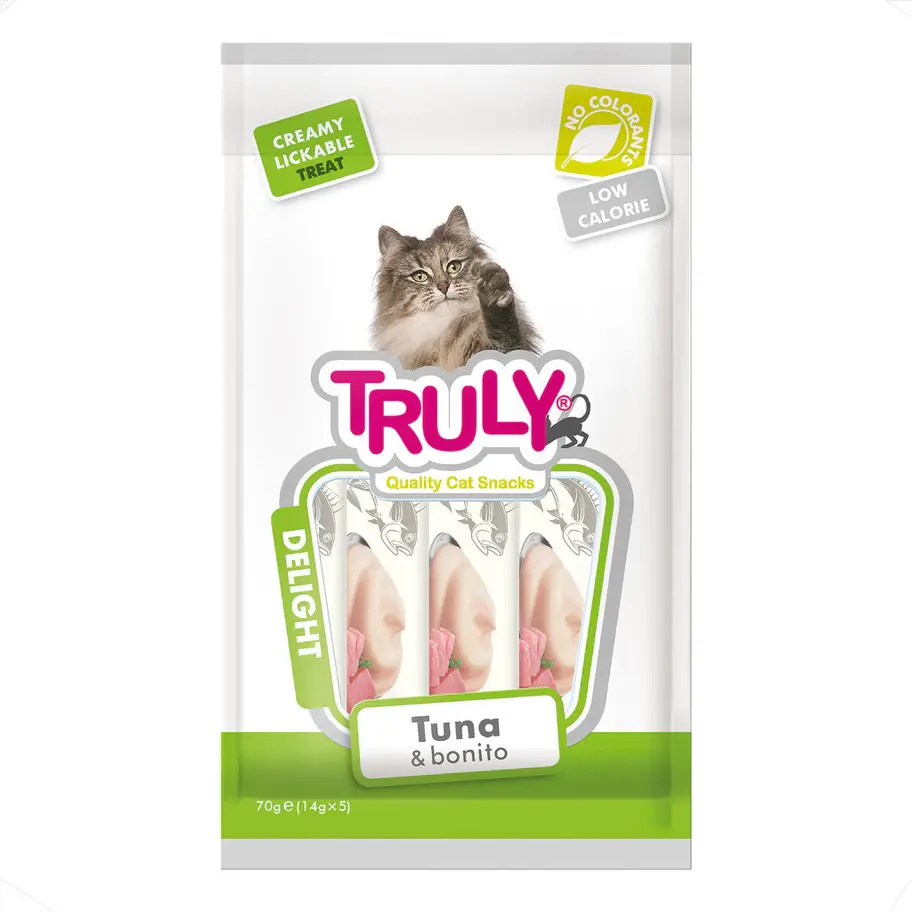 O sachê Truly sabor Shrimp & Codfish é uma opção cremosa e nutritiva para agradar o paladar exigente dos gatos. Feito com ingredientes reais, como camarão e bacalhau, este snack é rico em proteínas e possui ácidos graxos ômega-3, que auxiliam na manutenção de uma pele saudável e uma pelagem brilhante. Além disso, é uma escolha saudável, sem corantes, conservantes ou sabores artificiais, sendo ideal para complementar a dieta do seu felino.